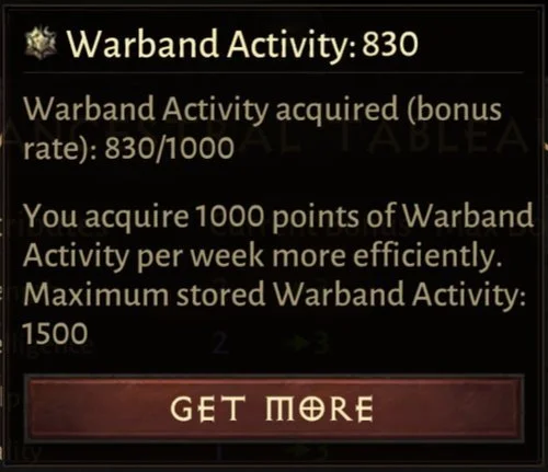 You can acquire 1000 points of Warband Activity per week and store a maximum of 1500 points. *Keep in mind that from 1000 top 1500 points you get only 20% of the total points.