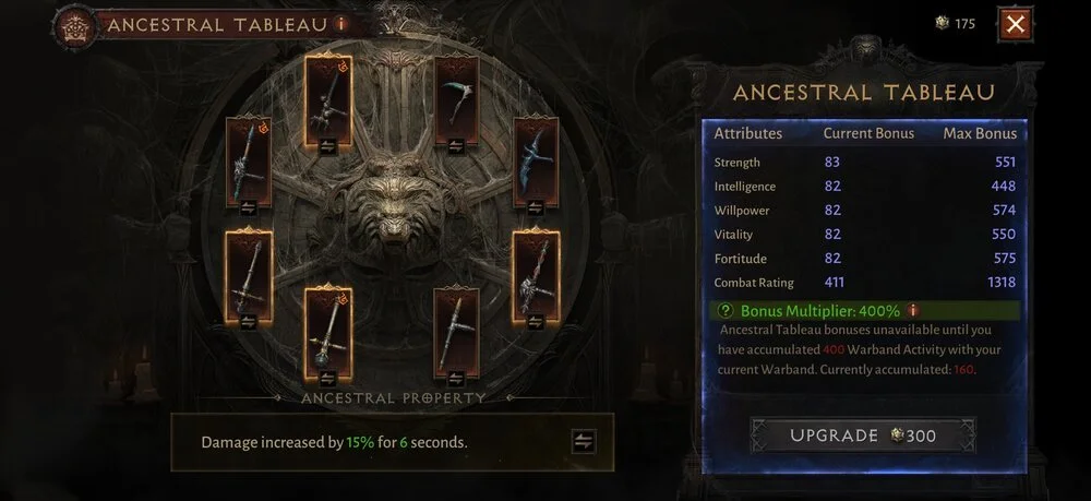 The Ancestral Tableau has been Updated and now it’s easier for players to get all the bonuses from the Table. All you have to do is join a Warband to furthermore increase your stats and unlock extra buffs to use in both PvP (player vs. player) and PvE (player vs. enemy) related activities.