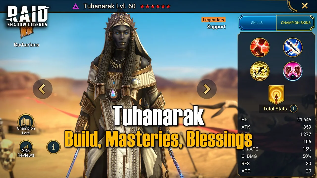 Tuhanarak is an S-Tier Legendary Support, Void Affinity Barbarian Champion in RAID: Shadow Legends. Check out some of its best builds for both PvP and PvE activities below.